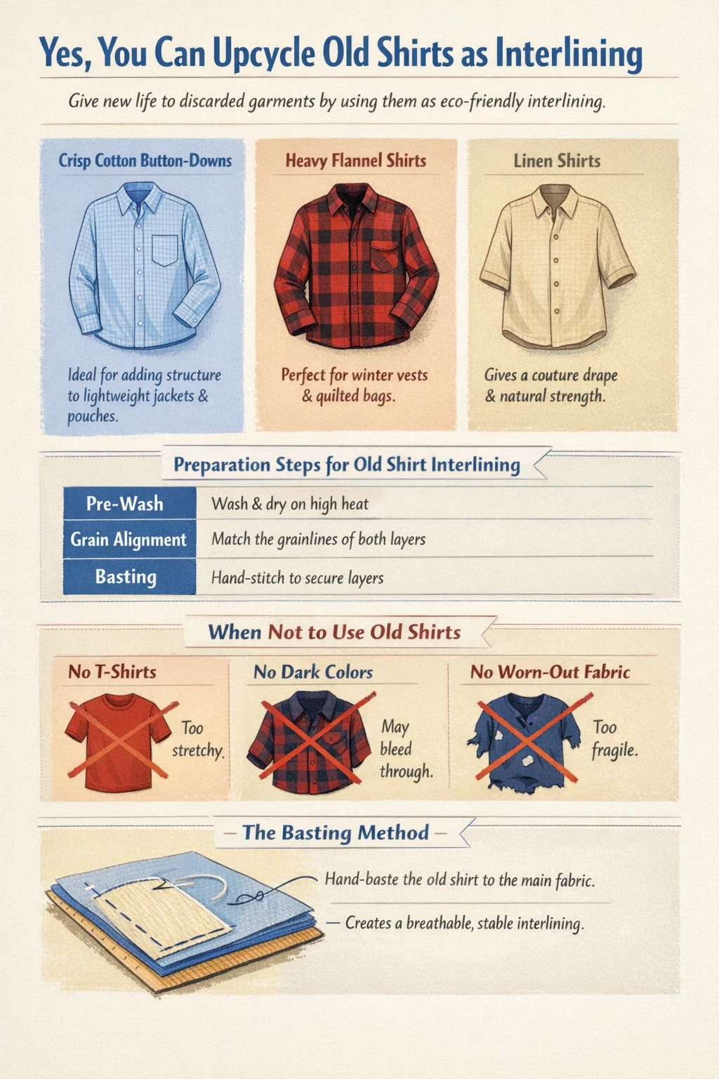 Även om upcycling är bra, finns det vissa scenarier där man använder en skjorta som en interlining kommer att misslyckas.